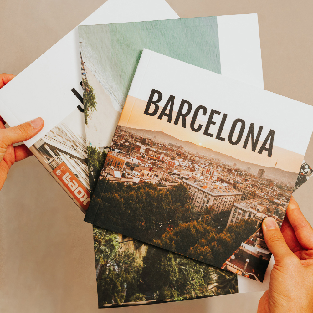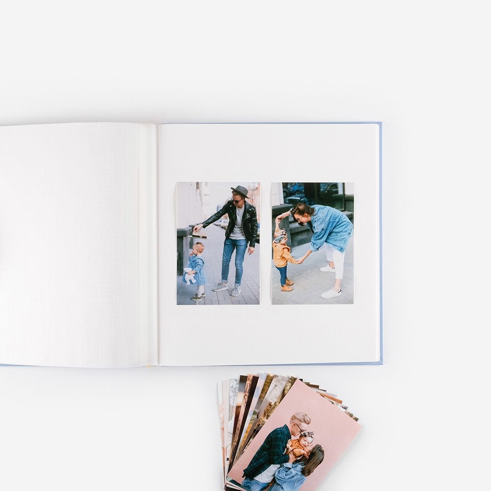 Os Álbuns Analógicos em Linho com Janela são compostos por páginas para colares as fotos com stickers.