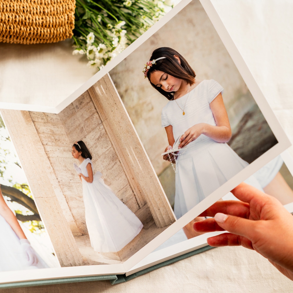 No modelo Cameo, a capa abre uma janela para a emoção. A tua fotografia favorita é integrada de forma permanente na capa em tecido, criando um leve relevo que a transforma no coração do álbum e num convite imediato para descobrir as memórias que guarda no interior.