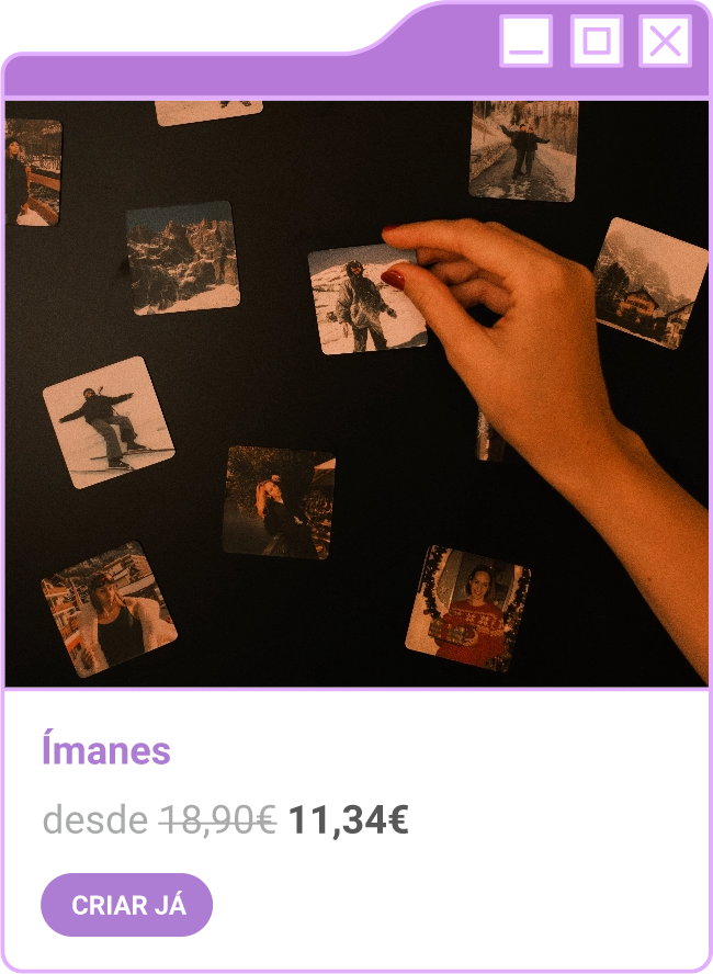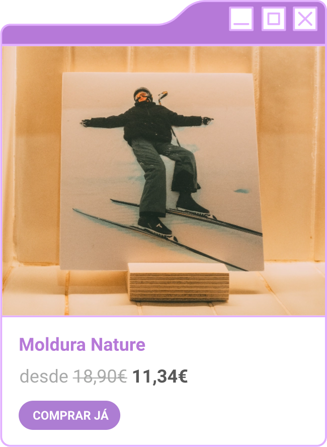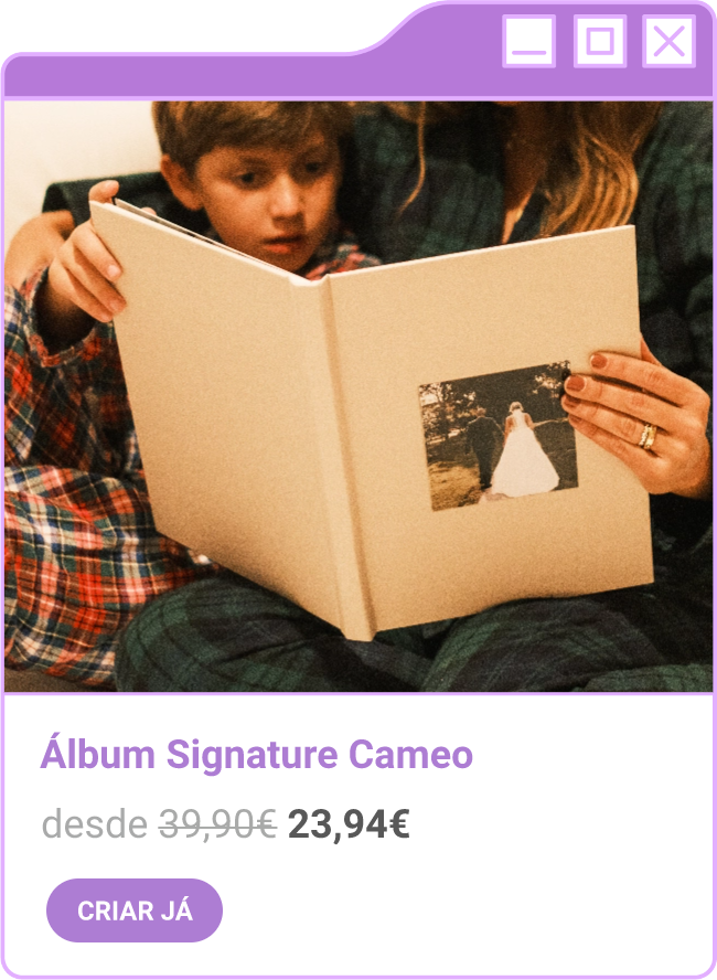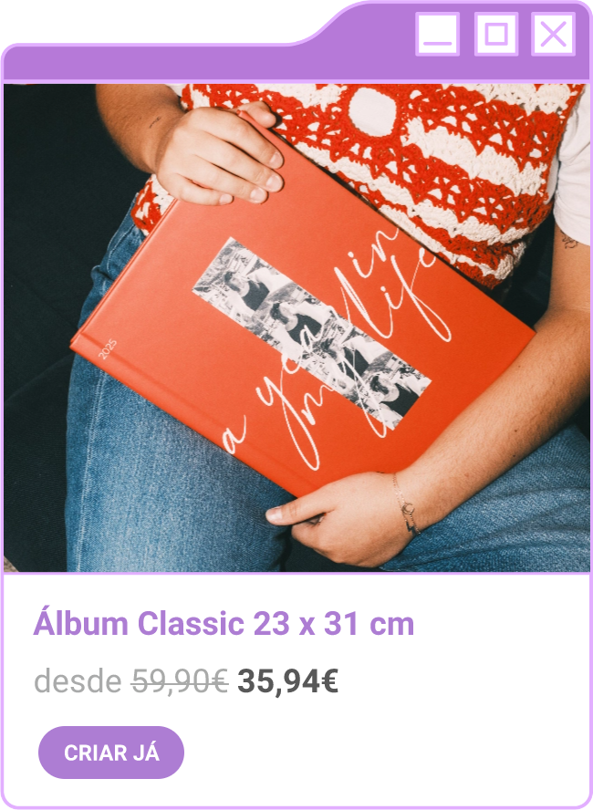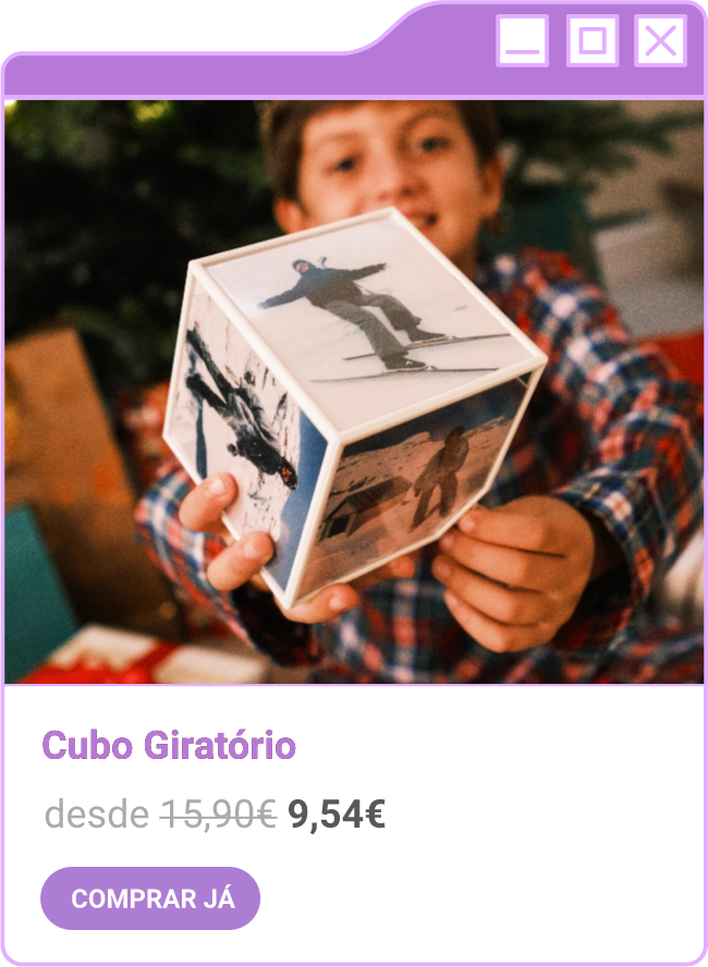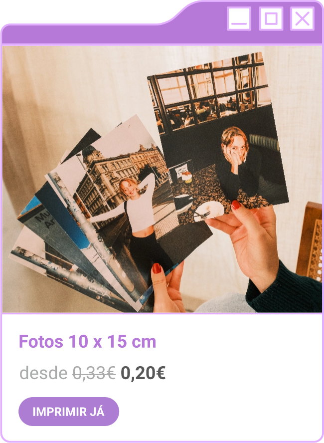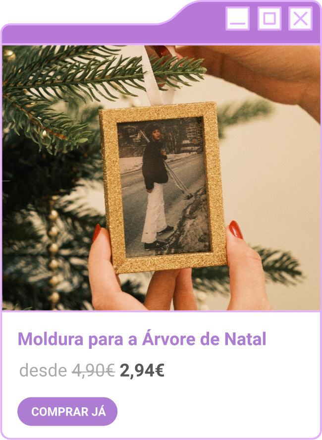 Condições da campanha: Campanha de 30% de desconto em todo o site sem valor mínimo de compra mediante a submissão do código FORTNIGHT30, e 40% de desconto em compras superiores a 60€ mediante a submissão do código FORTNIGHT40, válidas de 17/11/2025 a 01/12/2025. Campanhas não acumuláveis com outras campanhas/vouchers em vigor. Packs de Fotos Standard 10x15cm e 15x20cm, Fotos 24h, Telas Sintéticas e produtos de Stock Off não incluídos.