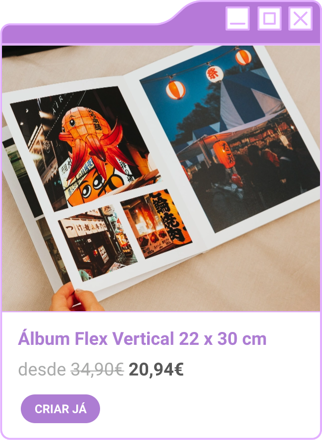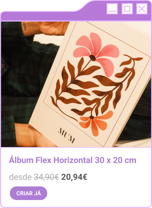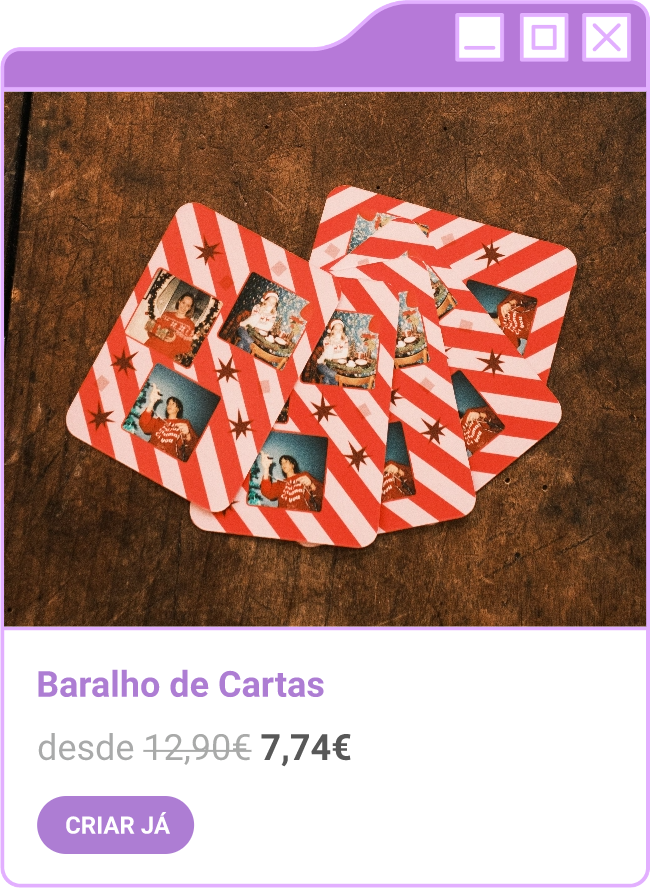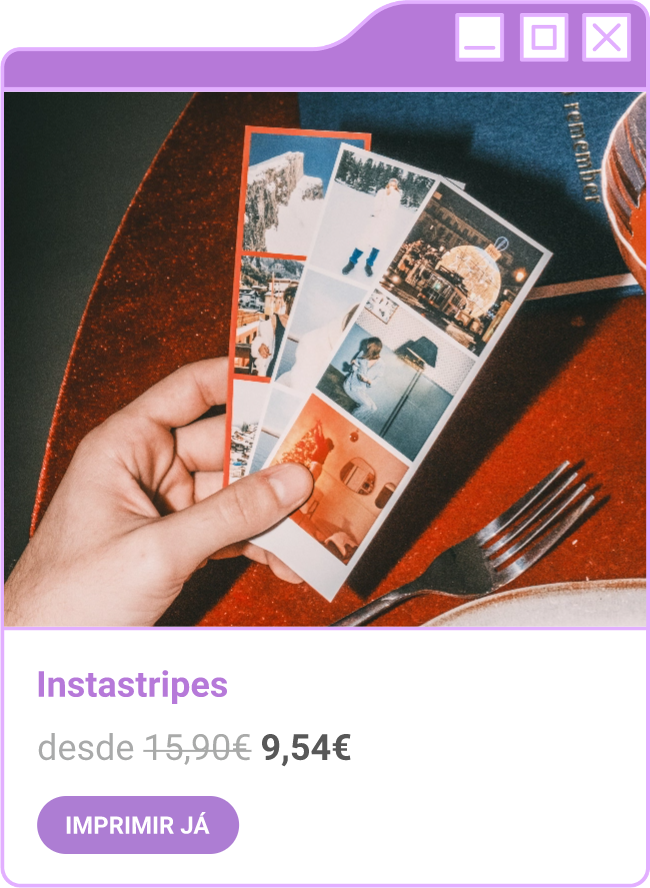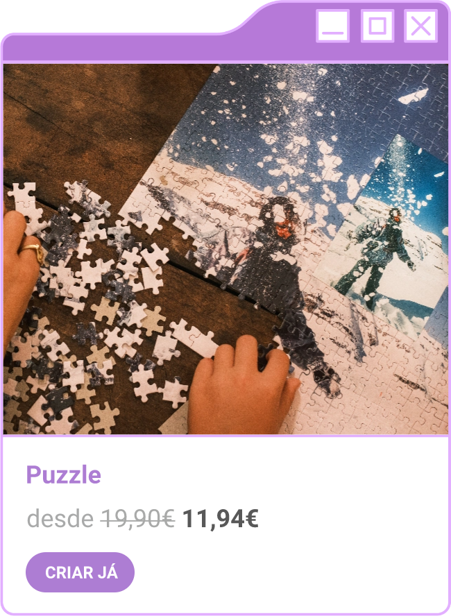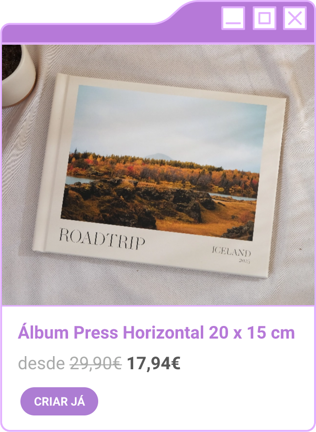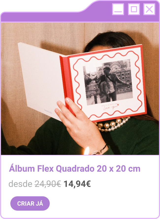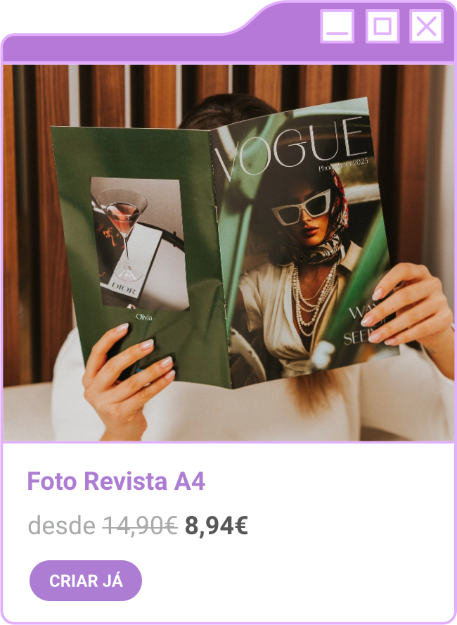 Condições da campanha: Campanha de 30% de desconto em todo o site sem valor mínimo de compra mediante a submissão do código FORTNIGHT30, e 40% de desconto em compras superiores a 60€ mediante a submissão do código FORTNIGHT40, válidas de 17/11/2025 a 01/12/2025. Campanhas não acumuláveis com outras campanhas/vouchers em vigor. Packs de Fotos Standard 10x15cm e 15x20cm, Fotos 24h, Telas Sintéticas e produtos de Stock Off não incluídos.