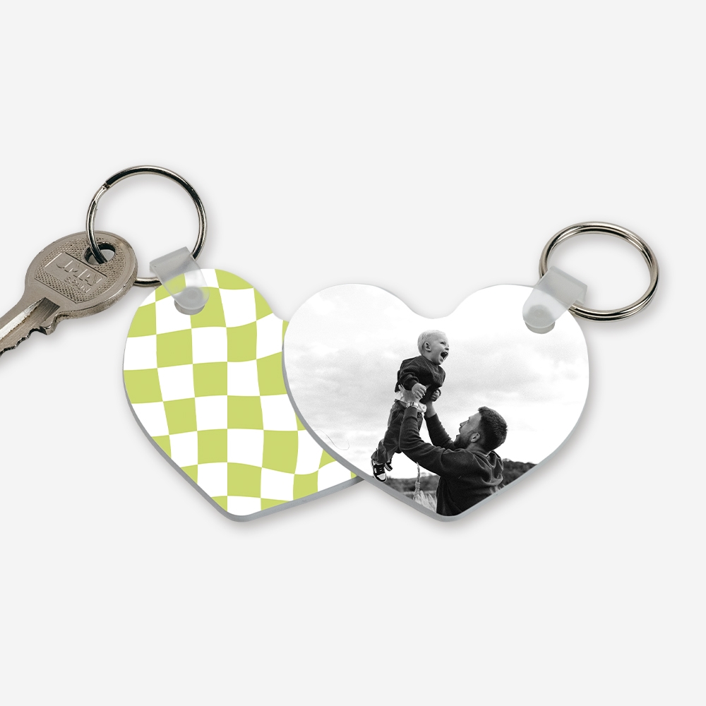 Um porta-chaves em forma de coração que troca o básico por um padrão checkered distorcido em verde lima. É o pequeno detalhe que faltava para levares a tua foto favorita sempre contigo, com um estilo retro e super descontraído.